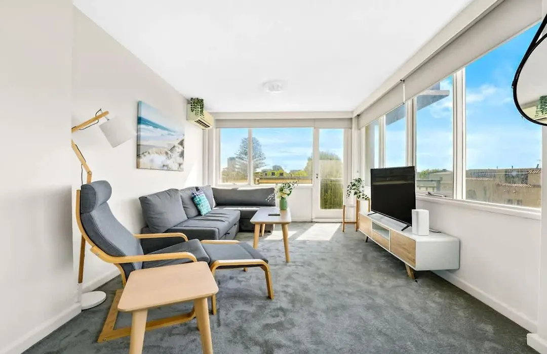 Brightly Renovated St Kilda Apt With Sea Views 멜번